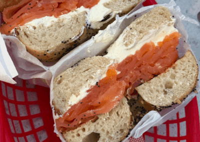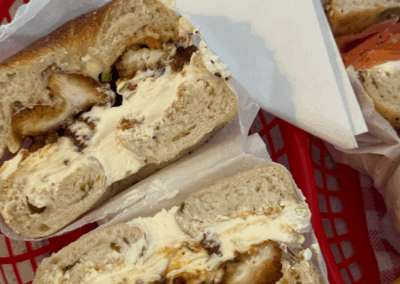 We’re not just about bagels; we’re a celebration of flavours that transport you to sun-kissed shores with every bite. Our menu is a canvas, where each bagel is an artistic creation brimming with local produce and imaginative toppings